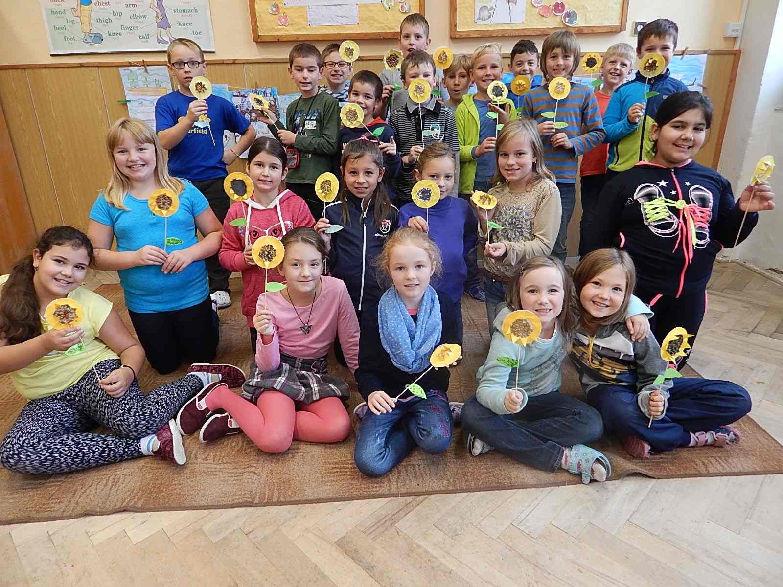 Na podzim si zdobíme naše příbytky květinami, které nám připomenou, že léto ještě tak úplně neodešlo a pořád jsou kolem nás alespoň jeho střípky. Paní učitelka Bláhová se svými třeťáčky k výzdobě učebny vybrala krásné slunečnice. Podívejte se, jak se dětem povedly. No, prostě nádherné.