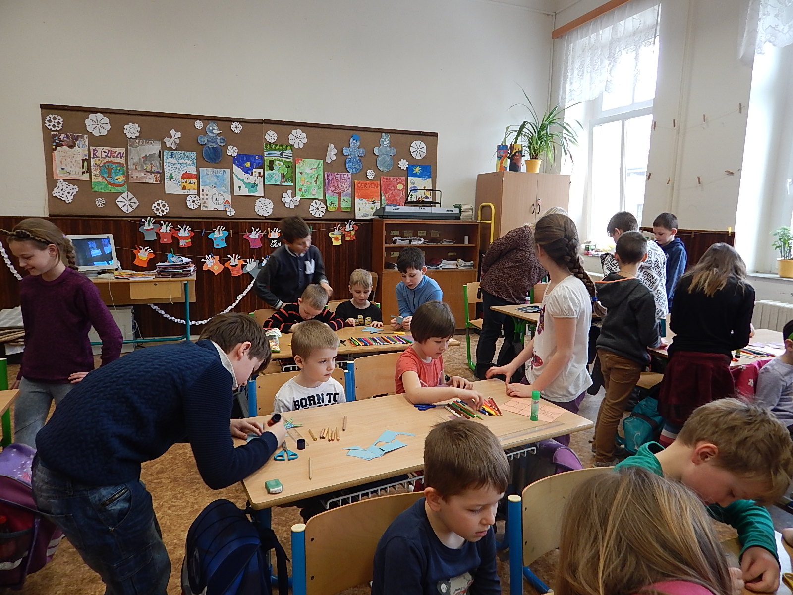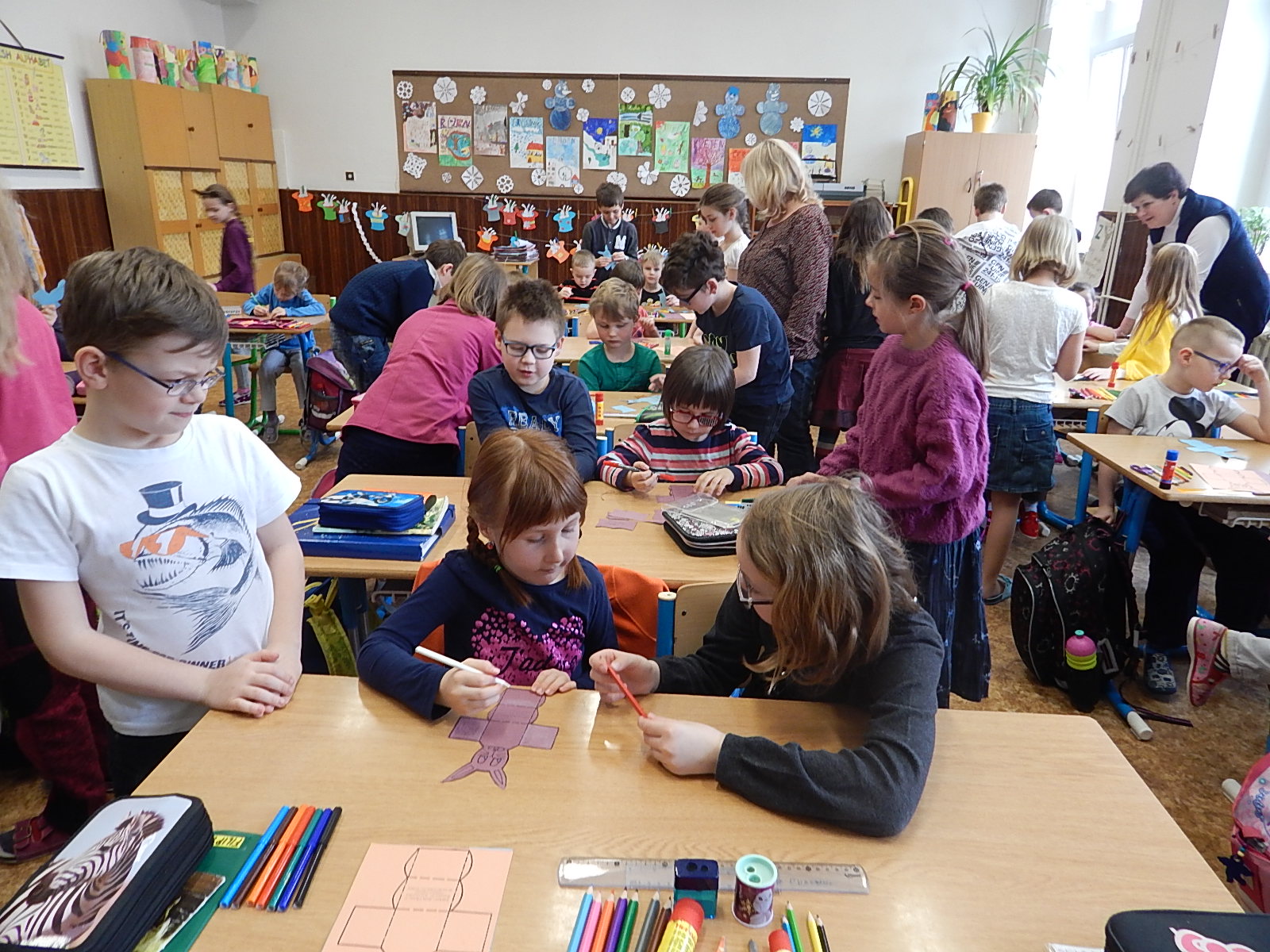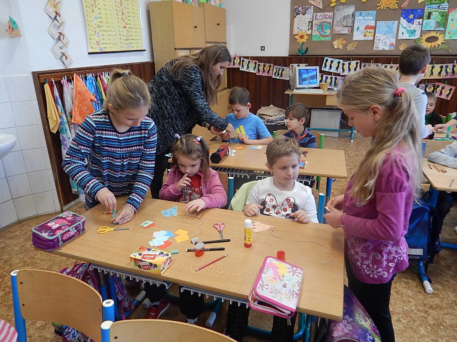 Jako tradičně i toto jaro zavítaly do naší školy děti ze školek. Naši žáci ze třetích a čtvrtých tříd si pro ně připravili výrobu roztomilého velikonočního zajíčka. Starší žáci pro malé předškoláčky zorganizovali zase soutěže v tělocvičně. Malí předškoláci nám na oplátku ukázali, co už umí, přednesli básničky a zazpívali písničky o jaru.