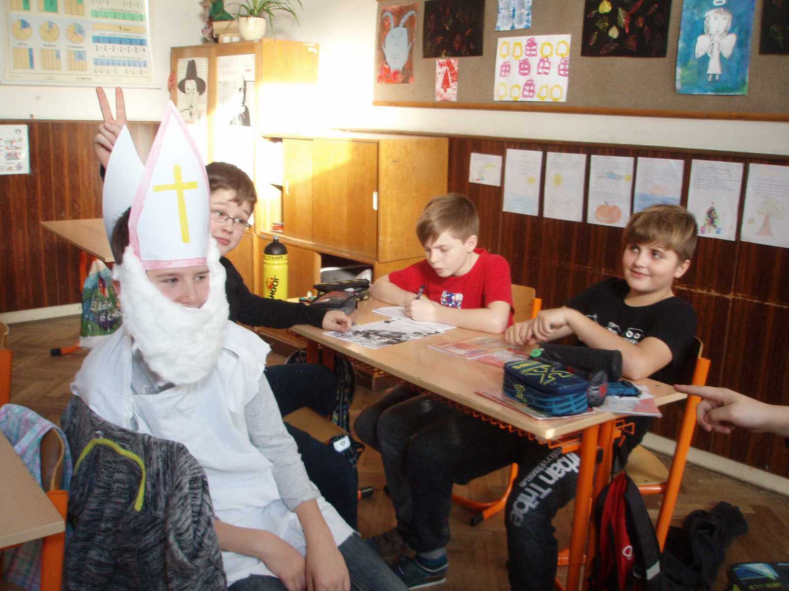 Jako každým rokem, tak i letos, paní učitelky Hollegchová a Hašková připravily pro žáky projektový den na téma Mikuláš. Povídalo se o tradicích, kreslily se obrázky a zpívaly koledy. Děti si vyráběly i různé masky čerta, andělů i Mikuláše.