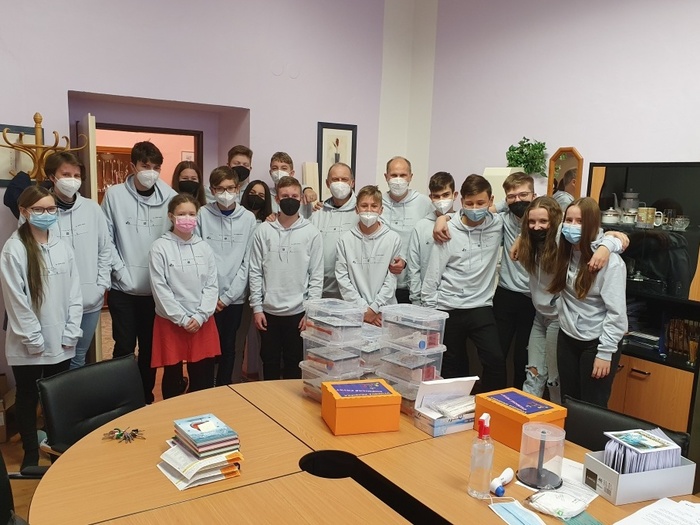 Třída 9. A se oblékla do svých absolventských mikin. Jednu z nich tradičně věnovali řediteli školy. Určitě budou všem slušet a budou krásnou připomínkou na doby studia.