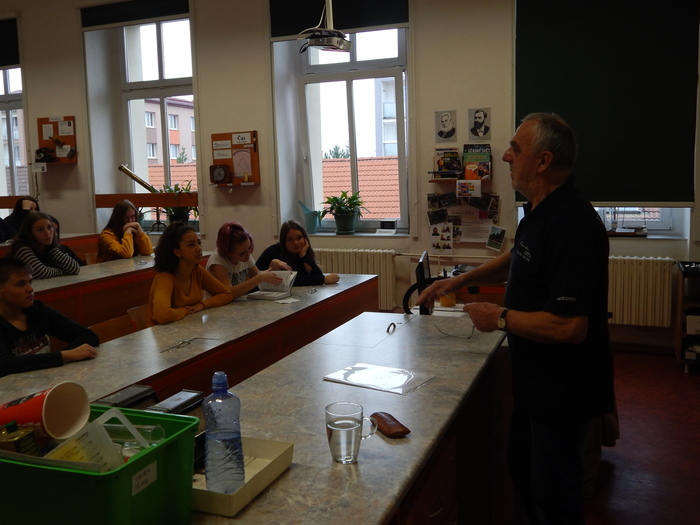 I letos jsme pokračovali v besedě Jeden svět na školách. Letošním hostem byl bývalý starosta Čáslavi pan Procházka. Tichá vzpomínka patří našemu dlouholetému průvodci besedami v minulých letech panu ppl. ve výslužbě panu Dostálovi.