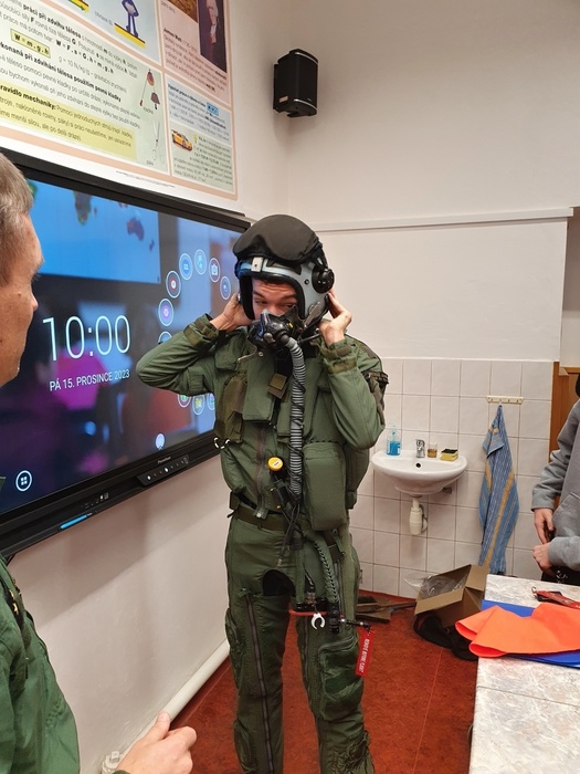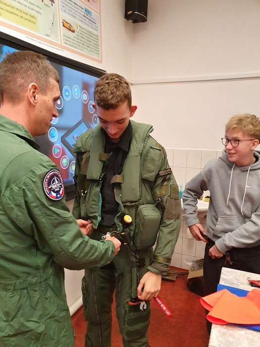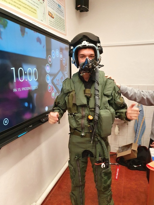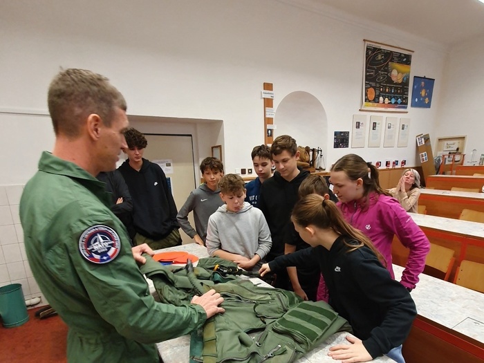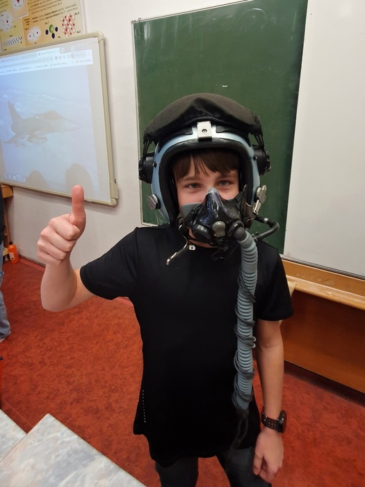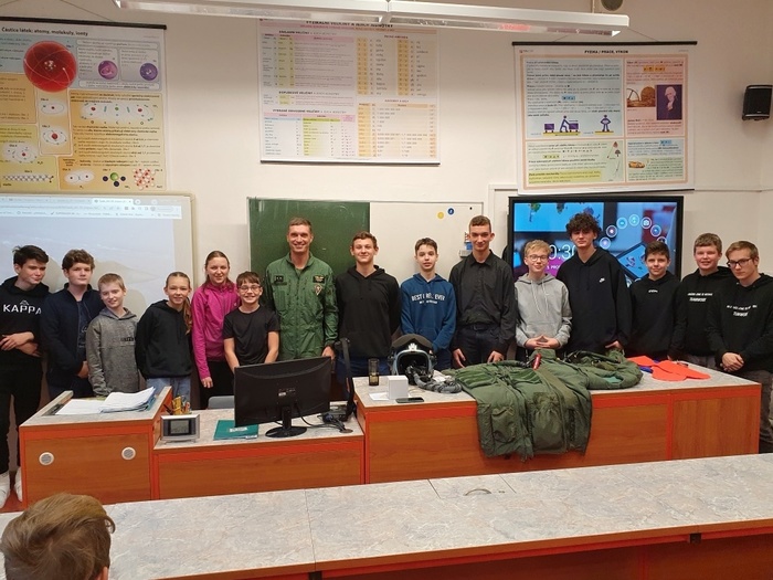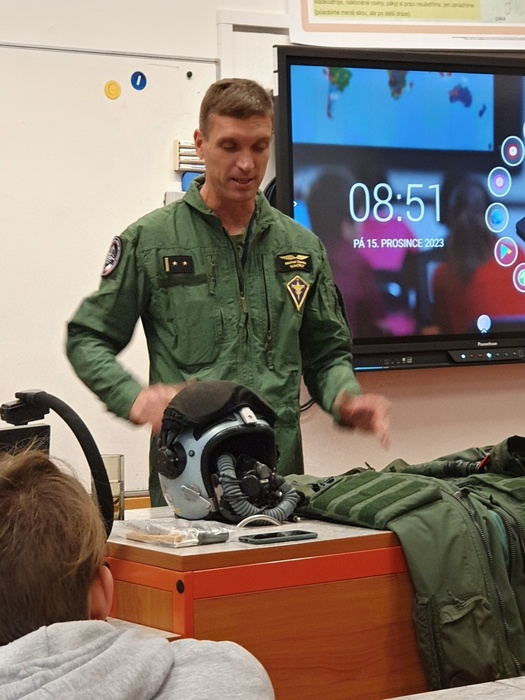 Důvodem jeho návštěvy byla beseda se žáky sedmého a devátého ročníku o povolání pilota nadzvukových letadel. Děti se při ní dozvěděly, jak náročná je příprava pilotů a jak je důležité jejich celoživotní vzdělávání. Udělaly si představu, jak probíhá příprava letu, jeho průběh i následné vyhodnocení. Samy si mohly vyzkoušet některé části pilotní výstroje a řeč přišla i na nenahraditelnost pilotů umělou inteligencí. Některé dotazy mířily i do soukromí. Ze všech odpovědí na otázky bylo cítit, že pro pana podplukovníka je jeho práce vášní a sám řekl, že nikdy nelitoval svého rozhodnutí stát se pilotem. Děti byly z besedy opravdu nadšené a rozloučily se bouřlivým potleskem. Setkávání s takovými osobnostmi je pro žáky velmi zajímavé a motivační.