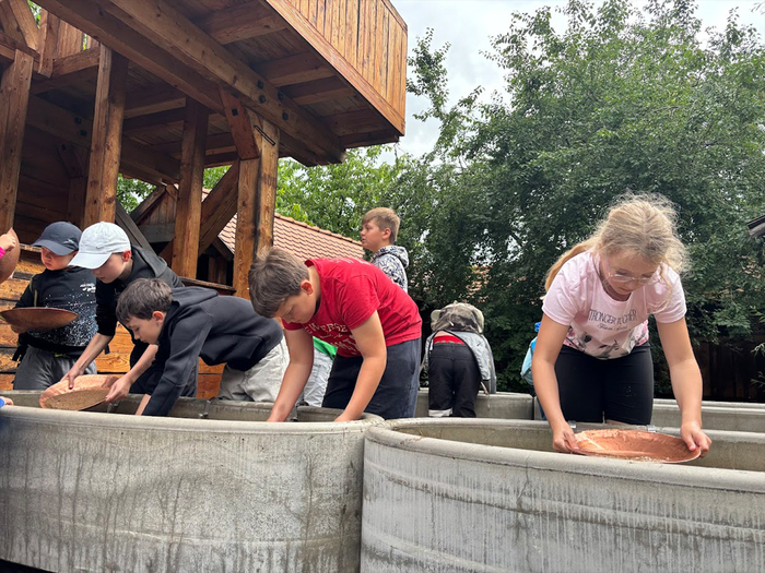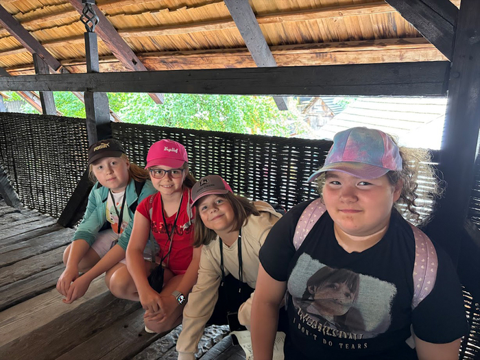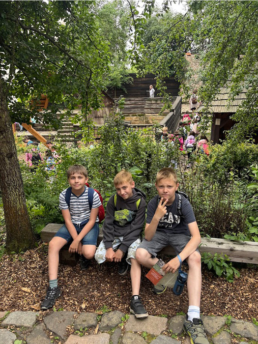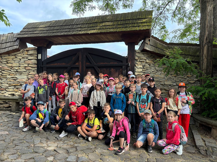 Naši čtvrťáci dnes navštívili středověkou vesničku v Ostré. Podívali se jak to chodí v kovárně, u řezbáře nebo dráteníka, objevili tajemství ruční výroby papíru, svíček nebo provazů, vyrobili si společně mýdlo nebo loutku, vyzkoušeli si lukostřelbu nebo rýžování zlata. Osvěžili se bylinnými sirupy, hlad zahnali bramborákem nebo keltskými palačinkami z pohankové mouky. Zažili úžasnou atmosféru této vesničky, vyzkoušeli si tradiční řemesla a ochutnali tradiční pokrmy. Toto vše zaplatili místní měnou, groši, které si vyměnili ve směnárně. Výlet se nám všem moc líbil a náramně jsme si to užili.