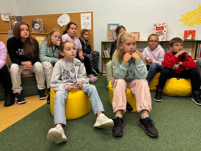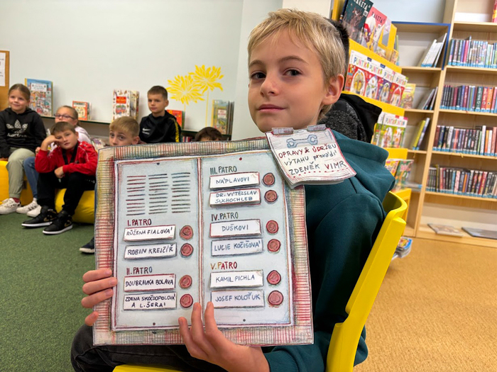Žáci čtvrtých ročníků ve středu 2.10.2024 navštívili veřejnou knihovnu v našem městě Čáslavi a zúčastnili se komentované výstavy ke knize spisovatelky Kláry Smolíkové a ilustrátorky Kačky Illnerové. Hlavní hrdinka Dalila je seznámila se svým novým bydlištěm a podivínskými sousedy během jízdy v otevřeném výtahu. Paní knihovnice přečetla žákům ukázky z knihy, prohlédli si výstavu ilustrací ke knize a na závěr je čekala beseda na dané téma. Bylo to krásné povídání o vztazích mezi lidmi.