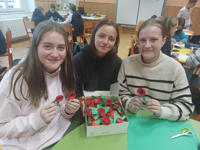 Naše škola se připojila k tomuto pietnímu aktu. V hodinách výtvarné výchovy jsme vyrobili vlčí máky, které budou 11. listopadu umístěny k památníku u Domova důchodců za přítomnosti vedení města, vojáků a zástupců naší školy, včetně žáků.