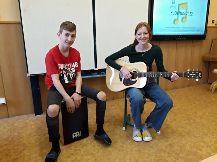 Naše škola se projektu EuDaMuS (= European Day of Music in School) zúčastnila. Tématem prvního ročníku byla „Síla hudby“ („The Power of Music“). Žáci druhého stupně i někteří žáci stupně prvního se naučili zpívat anglicky společnou píseň EuDaMuS 2022 nazvanou Together. Zazpívali si ji také na úterním on line setkání s žáky zúčastněných evropských zemí, kam do společného chatu zaslali pozdrav z ČR.