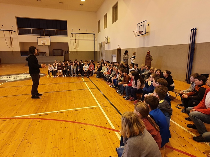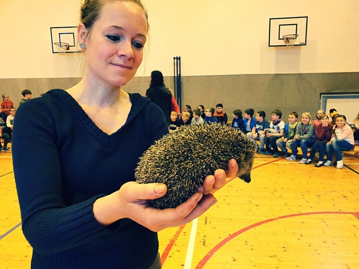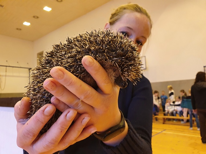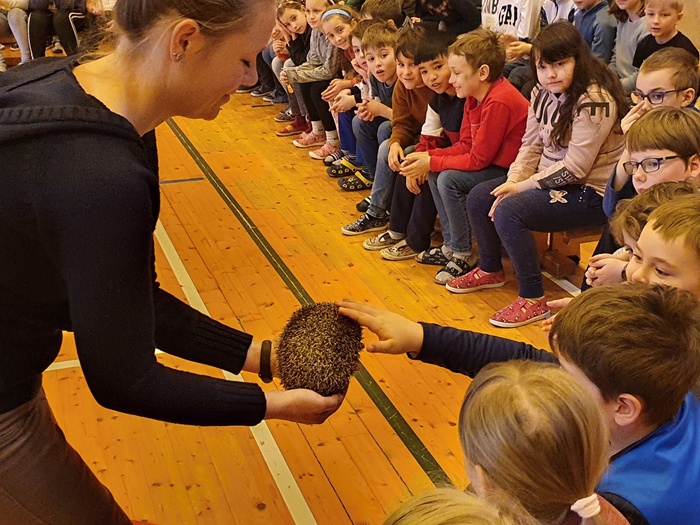 Děti z I. stupně měly možnost během úterního dopoledne, před Velikonocemi, poslechnout si krásné povídání o "Smyslech zvířat". Lenka a Ondra Pelikánovi z Obory Žleby (www.milujemeprirodu.cz) v ní poutavým způsobem děti seznámili s tím, jaké výjimečné dovednosti používají zvířata ve volné přírodě k tomu, aby si obstarala potravu a sama se co nejlépe ubránila nebezpečí a nástrahám divočiny. Děti mohly vidět různá zvířata a dokonce si některá pohladit. Ježka, hada, potkana, poštolku, netopýra a další. Všem se tento program velice líbil.