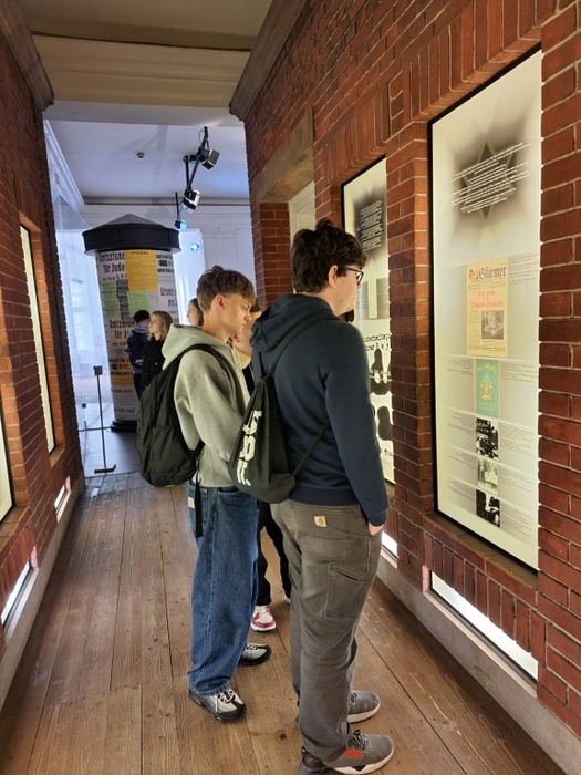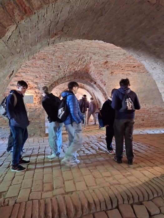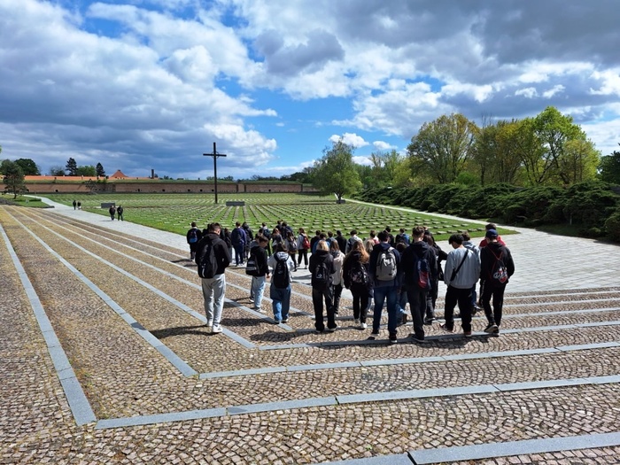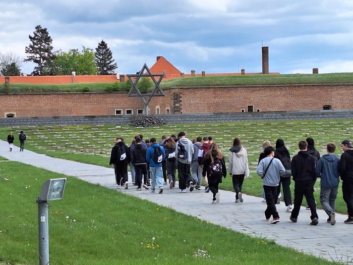 Ve čtvrtek 18. dubna jsme se vydali na exkurzi do Terezínského ghetta a přilehlé Malé pevnosti. Celý den byl zahájen prohlídkou muzea v ghettu, kde jsme se skrze expozici mohli blíže seznámit jak s průběhem perzekuce Židů v protektorátu, tak se systémem, jakým právě Terezínské ghetto fungovalo. Po krátkém přesunu ulicemi Terezína nás čekala další prohlídka, tentokráte výstavy v bývalých Magdeburských kasárnách. Zdejší expozice nabízí velmi živý pohled do životů vězňů v Terezíně a seznamuje návštěvníky s uměním, které vznikalo za zdmi ghetta. Posledním bodem programu byla komentovaná prohlídka bývalé věznice gestapa, Malé pevnosti. Zdejší zdi z dob Josefa II. mimo pochmurné atmosféry nabízejí velmi zajímavou avšak temnou historii pevnosti. Mimo jiné jsme prošli přijímacím nádvořím, vězeňskými sprchami, ale také různými hromadnými celami a samotkami. Podívali jsme se také do 500 m dlouhé podzemní chodby, která je součástí původního opevnění. Celý den byl velmi zajímavý, témata nás zaujala a každý z nás se navzdory nepřejícímu počasí dozvěděl něco nového.