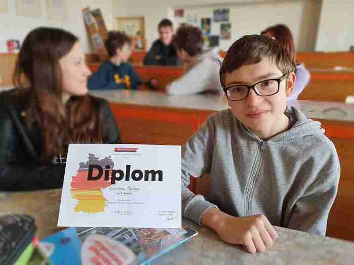 Dne 21.března 2022 se účastnili vítězové školního kola z 9. ročníku okresního kola olympiády v německém jazyce. Miroslav Malina, žák 9.A, se umístil na krásném 3. místě. Blahopřejeme a děkujeme za vzornou reprezentaci naší školy.
