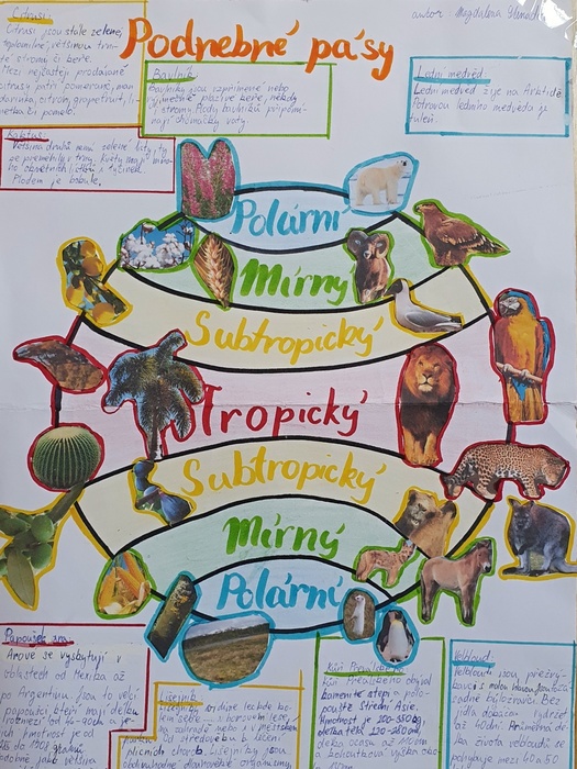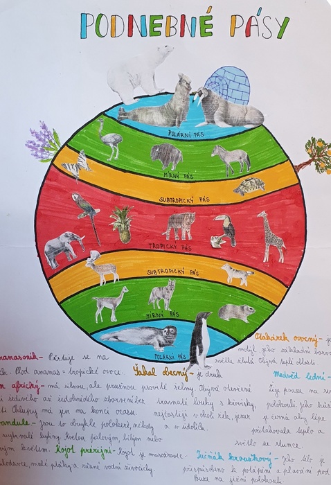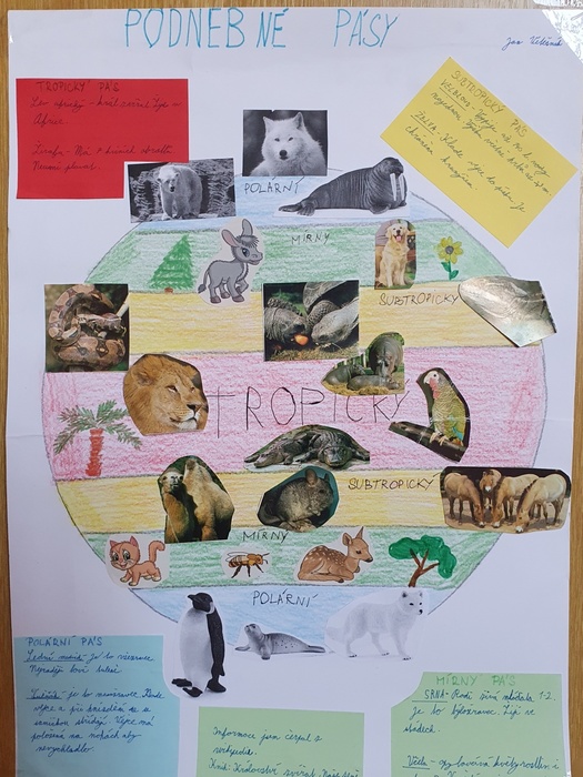 teplotních pásů na Zemi a živočichy či rostlinami, které se v jednotlivých podnebných pásech vyskytují.