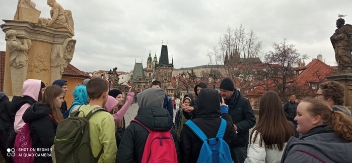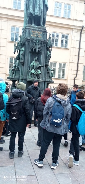 Dvakrát odloženou exkurzi 8. B se svými učiteli konečně absolvovala! A stálo to za to. Se sympatickým průvodcem jsme se setkali na Křížovnickém náměstí a tady také odstartovali zajímavě pojatou prohlídku Karlova mostu a Kampy. Ve šestičlenných týmech jsme vyrazili poznávat, hádat, odhadovat, představovat si a soutěžit. Úkoly, které nám náš průvodce zadával, byly rozmanité. Některé ryze vědomostní, jiné zaměřené a rychlost, postřeh, logické myšlení, schopnost pohotově vyvozovat nebo argumentovat.