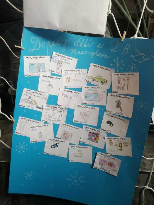 2.B se vydala do Informačního centra v Čáslavi, kam odnesla dopis Ježíškovi. Přání dětí byla různorodá. Někdo si přál panenku, někdo auto, jiný los. Nezapomnělo se ani na lásku a porozumění. Na závěr se zpívala koleda u stromečku. Nyní všichni netrpělivě čekají na odpověď.
