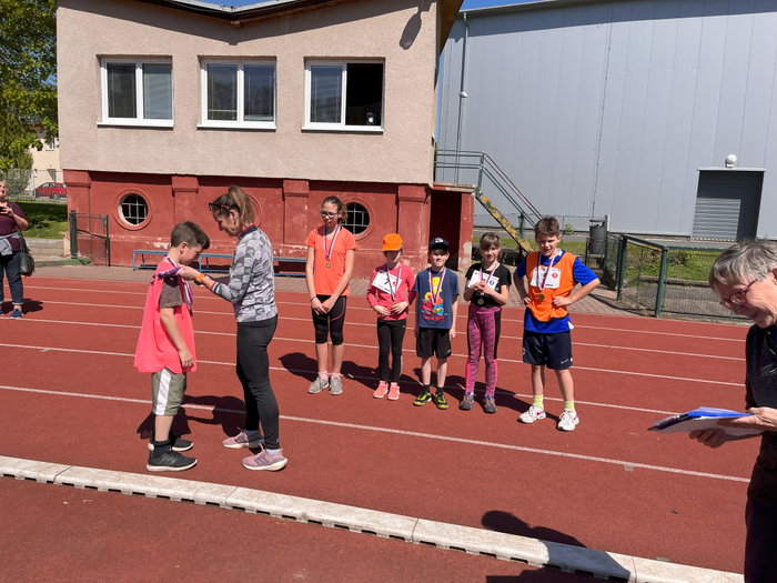 Naše děti běhaly skvěle a získaly pohár a bronzové medaile za celkové skvělé 3.místo. Taky zabodovaly v hodu medicinbalem, kde Dominik Vávra vyhrál 1.místo v kategorii mladších a Tonda Dušek získal zlatou medaili v kategorii starších ve skoku dalekém. Sportovcům z prvního stupně gratulujeme k pěkným výkonům a děkujeme za vzornou reprezentaci školy.