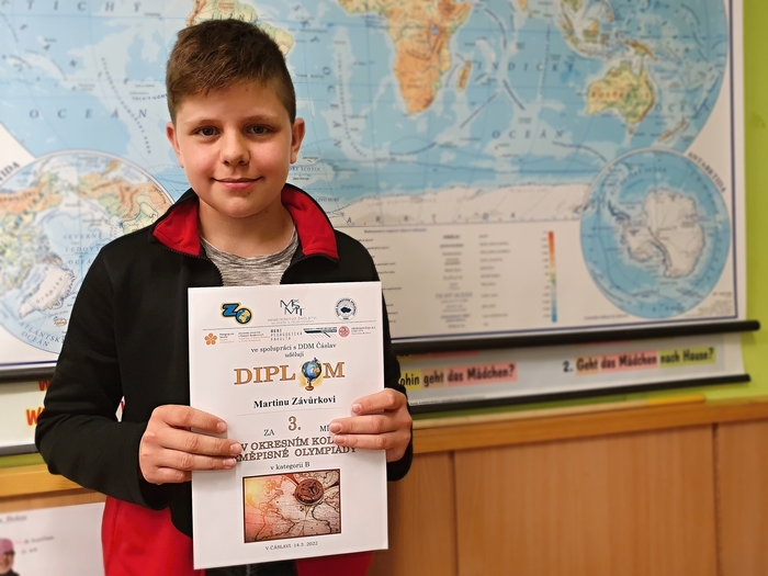 K úspěšným řešitelům olympiád se zařadil také Martin Závůrka ze 7. ročníku. Ve ztížených podmínkách okresního kola, které probíhalo on-line, obsadil 3. místo a postupuje do krajského kola Zeměpisné olympiády. Blahopřejeme.