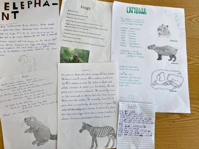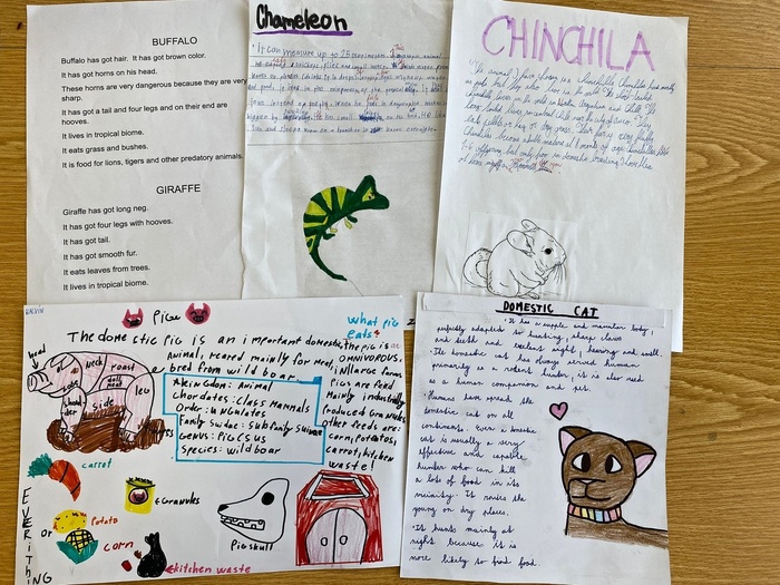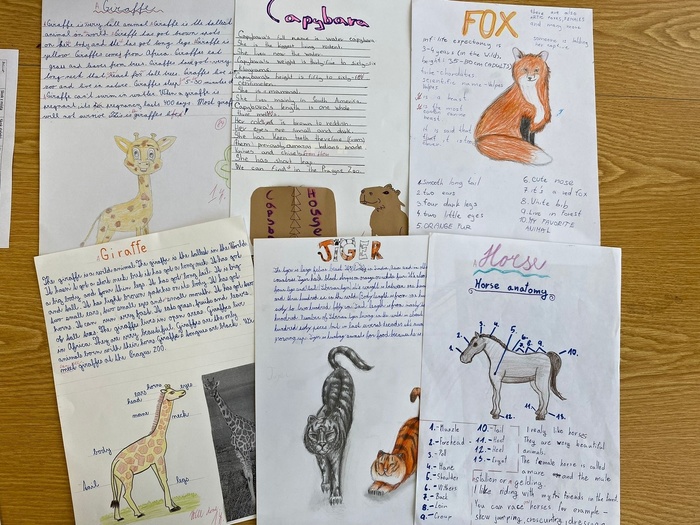 Paní učitelka Hašková často s dětmi tvoří v hodinách anglického jazyka projekty. Tentokrát bylo téma "Zvíře". Minimální počet anglických slov pro popis zvířete byl 80. To se ale často žákům podařilo překonat. Jejich jsou velmi zdařilé.