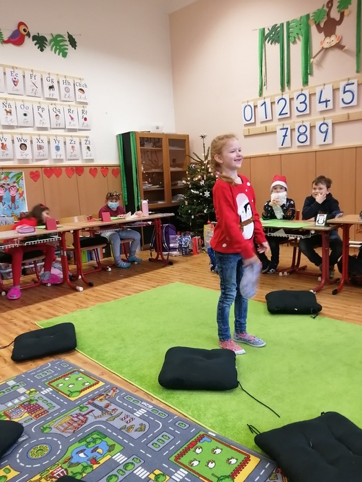 Před zimními prázdninami proběhla v 1. B vánoční besídka. Děti si připomněly, proč se Vánoce slaví. Seznámily se s mnoha zvyky a velkou řadu z nich (jako krájení jablka, zdobení stromečku, házení botou, zpívání koled a obdarování kamaráda) si vyzkoušely i prakticky. Nechyběl tanec, ani výroba dárku pro rodiče. Všichni si společný čas moc užili.
