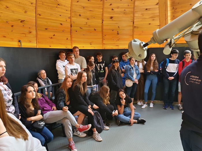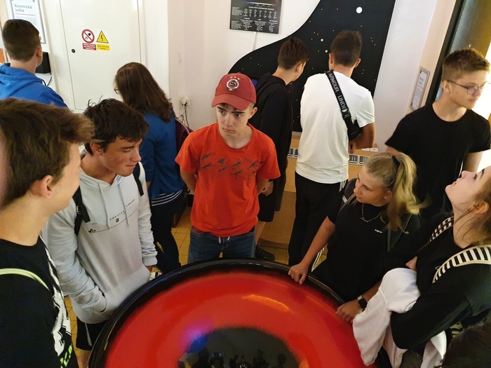 Závěrečné téma výuky fyziky na základní škole patří Vesmíru. O něm se žáci 9. ročníku dozvěděli více na exkurzi do Hvězdárny a planetária v Hradci Králové. Kromě toho však ještě poznali historické centrum města - Velké náměstí a zvládli výstup na Bílou věž.
